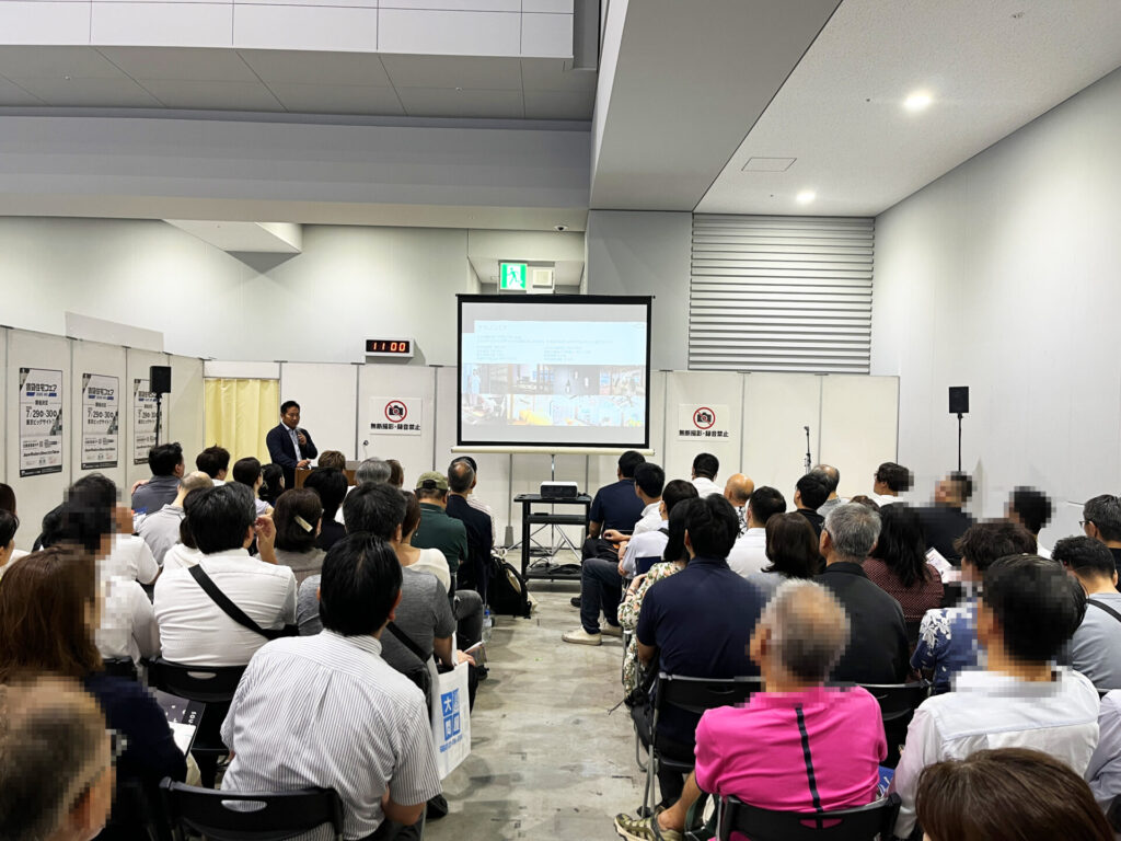 初日17日には、弊社代表のセミナー登壇。「ゼロ円で始める民泊空き家活用 資産を育てる新戦略」と題しまして、講演をさせていただきました。民泊にまつわる背景や現状を踏まえつつ、弊社の実績・ノウハウをベースとしたリアルなお話をさせていただきました。初日のしかも朝1発目にもかかわらず、定員を超えるみなさまにご来場いただきありがとうございました!