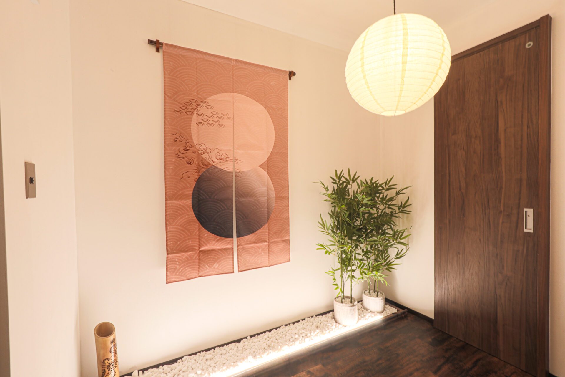 宿の“第一印象” である玄関には、柔らかな灯りの照明や季節を感じる和小物をそろえ、入った瞬間気分があがる空間を演出しています。
