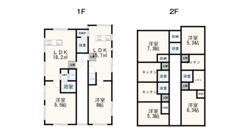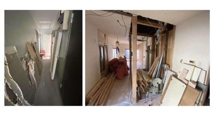 今回のリノベーションでは、民泊施設としての快適性を高めるため、まずは大幅な間取りの見直しから始めました。不要な間仕切り壁を撤去し、空間を再構成することで、1階2部屋・2階2部屋のゆとりある構成へと刷新しています。